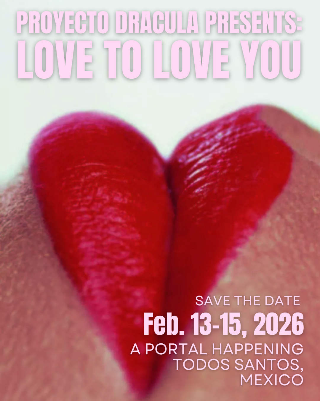 Feb 14th @7pm til late/ the Love Ball @Castillo de Dracula. It’s a performance and we are all the stars. This is not your average Valentine’s party: its a bubbling jacuzzi of good vibes. We will explore dimensions of love through the arteric chambers of El Corazon— an interactive portal with left and right ventricles guided by artists Zohar, Teatro Pescadero, Alf, and Datura Magik. Followed by a dance party in the solarium with DJ Alma Linda and special guests. Thanks to our sponsor, Lost Explorer Mezcal.